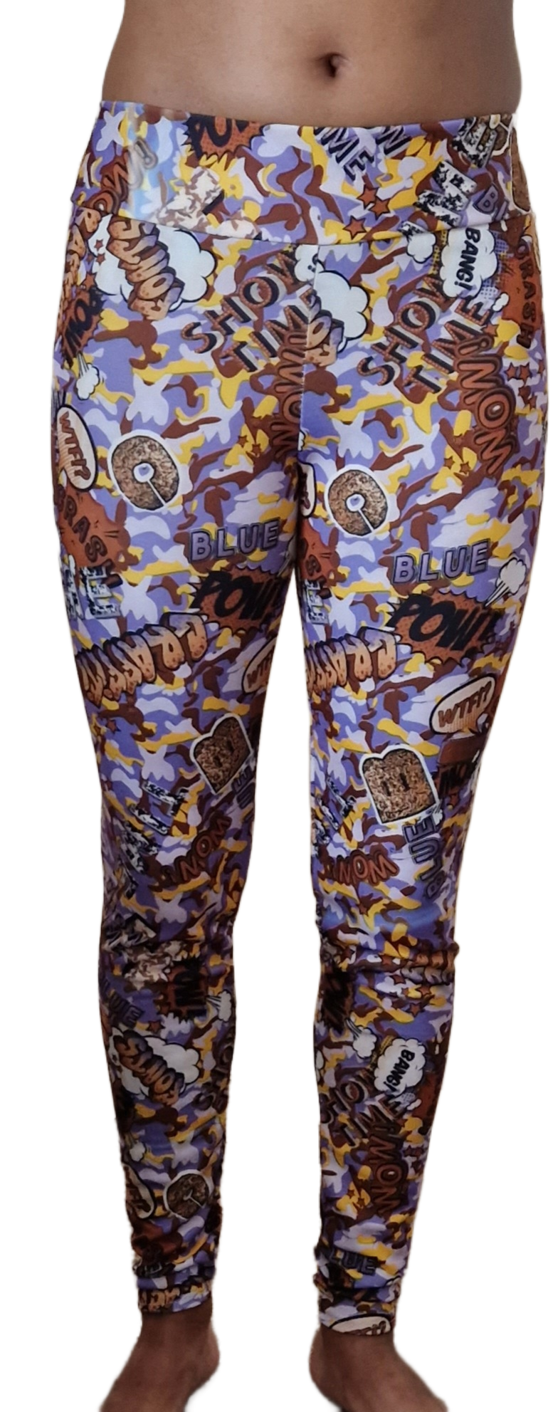 Made from a thick scuba/crepe material with a mixture of purple and brown graffiti print.